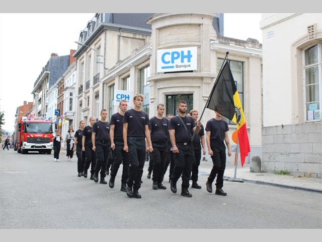 Participation d'une délégation de nos élèves de l'option AMDPS, Aspirant aux Métiers de la Défense, de la Prévention et de la Sécurité au défilé organisé à l’occasion du bicentenaire de la caserne des pompiers d’Ath.